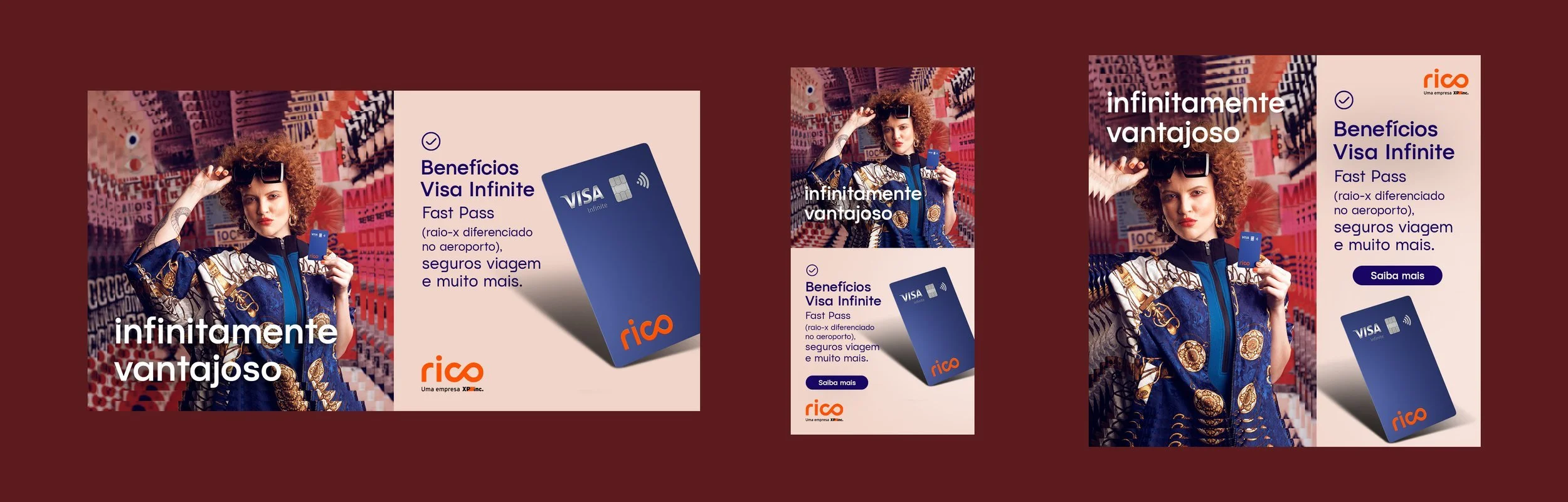 Rico is one of Brazil's leading financial platforms. In 2022, we repositioned the brand under the concept "Live Infinitely." The primary objective of the campaign was to promote the Rico Credit Card and Digital Account. To revitalize the brand's image, the campaign was strategically designed to appeal to a younger audience, featuring a digital-first approach with dynamic and modern language.